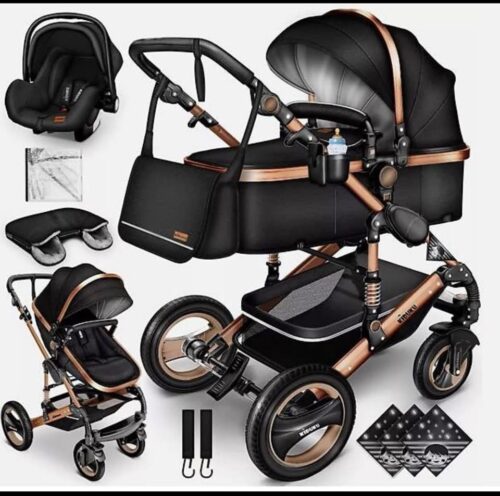 Kinderwagen XXL Komplettset | Kombikinderwagen Set inkl. Babywanne Buggy Sportsitz & Auto-Babyschale Fusssack | Vollgummireifen Wickeltasche Handwärmer Tragekorb Regenschutz. Alles ist wie NEU kaum benutzt.